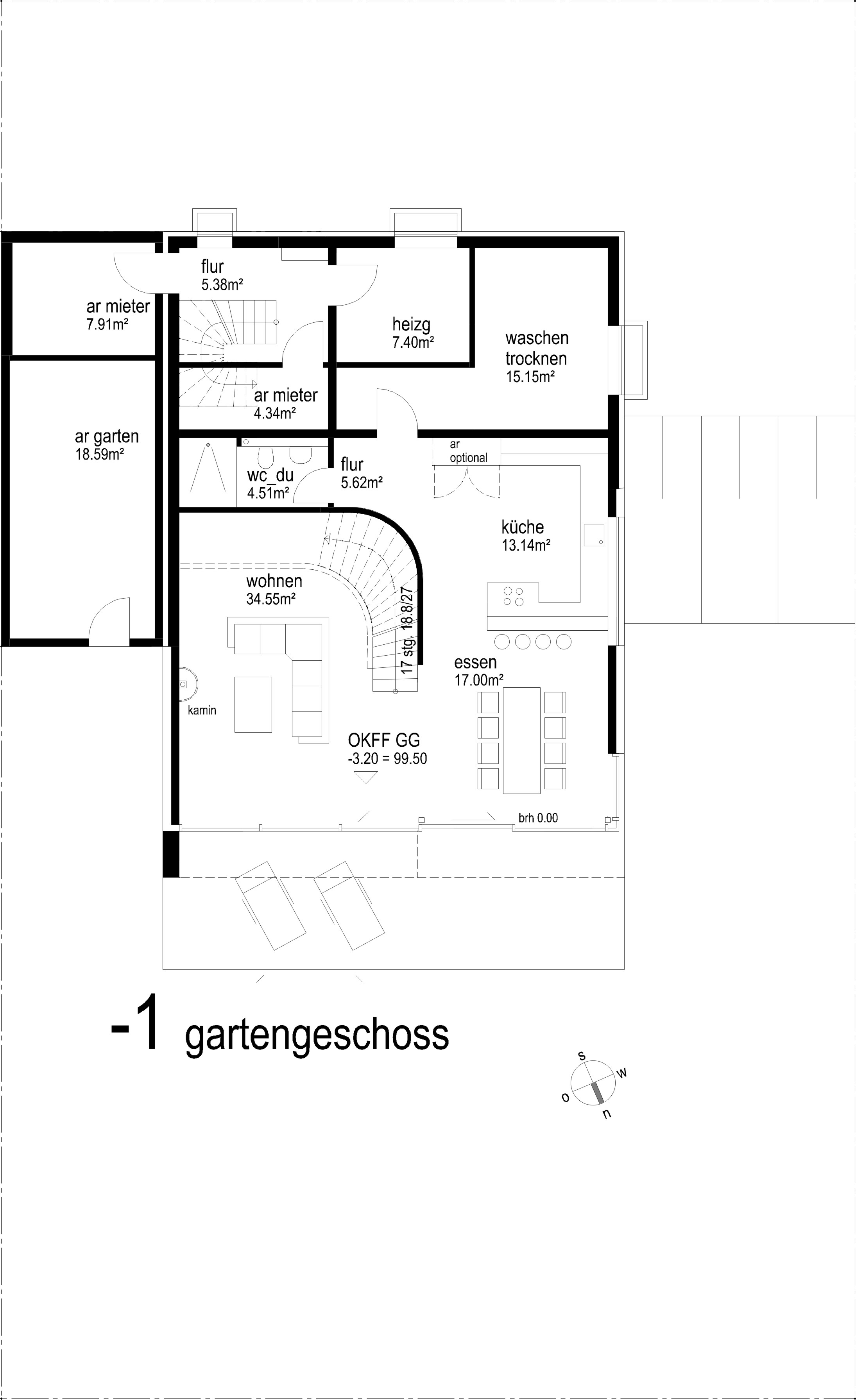 geordnet. der nördliche bereich des gartengeschosses
