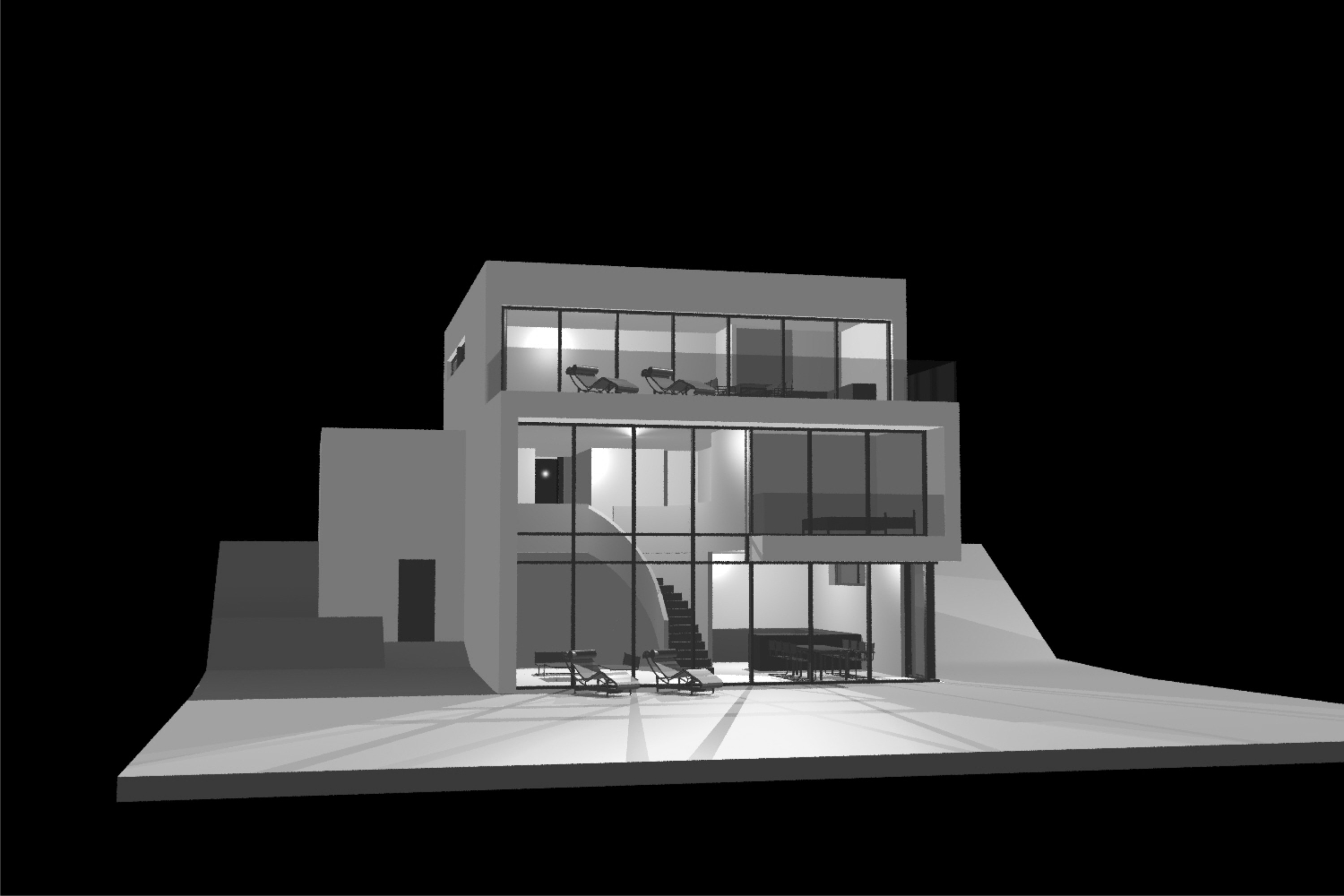 raum wird über eine geschwungene stahlbetontreppe erschlossen.
