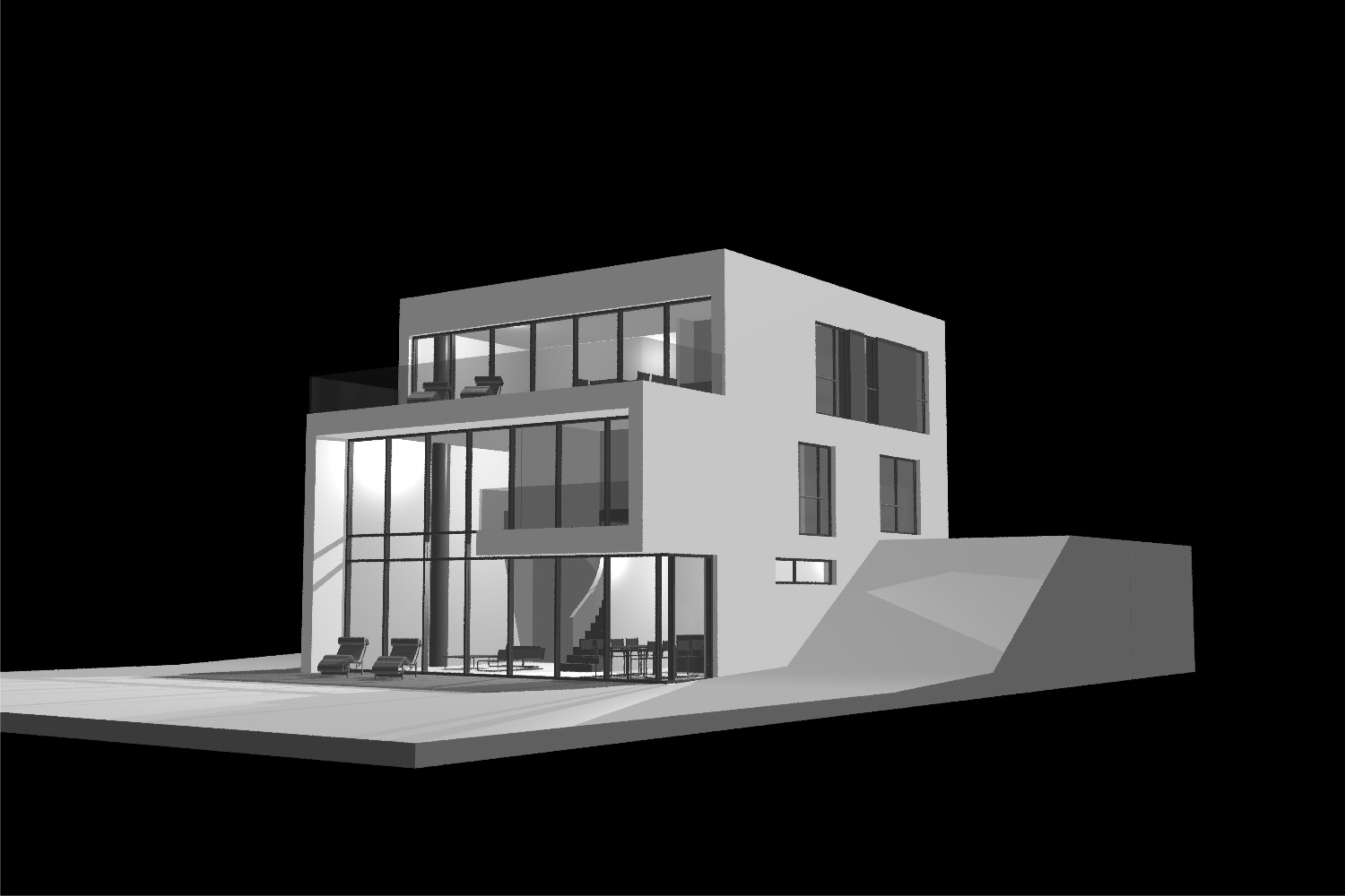 der besondere ort mit seeblick und die topographischen vorgaben des grundstückes dominieren die gestaltung des wohnhauses. der blick vom hang auf den phoenixsee wird bewusst inszeniert, ob vom eingangsbereich im erdgeschoss über den luftraum des wohnraumes, vom wohnraum selbst, vom elternschlafzimmer oder von der