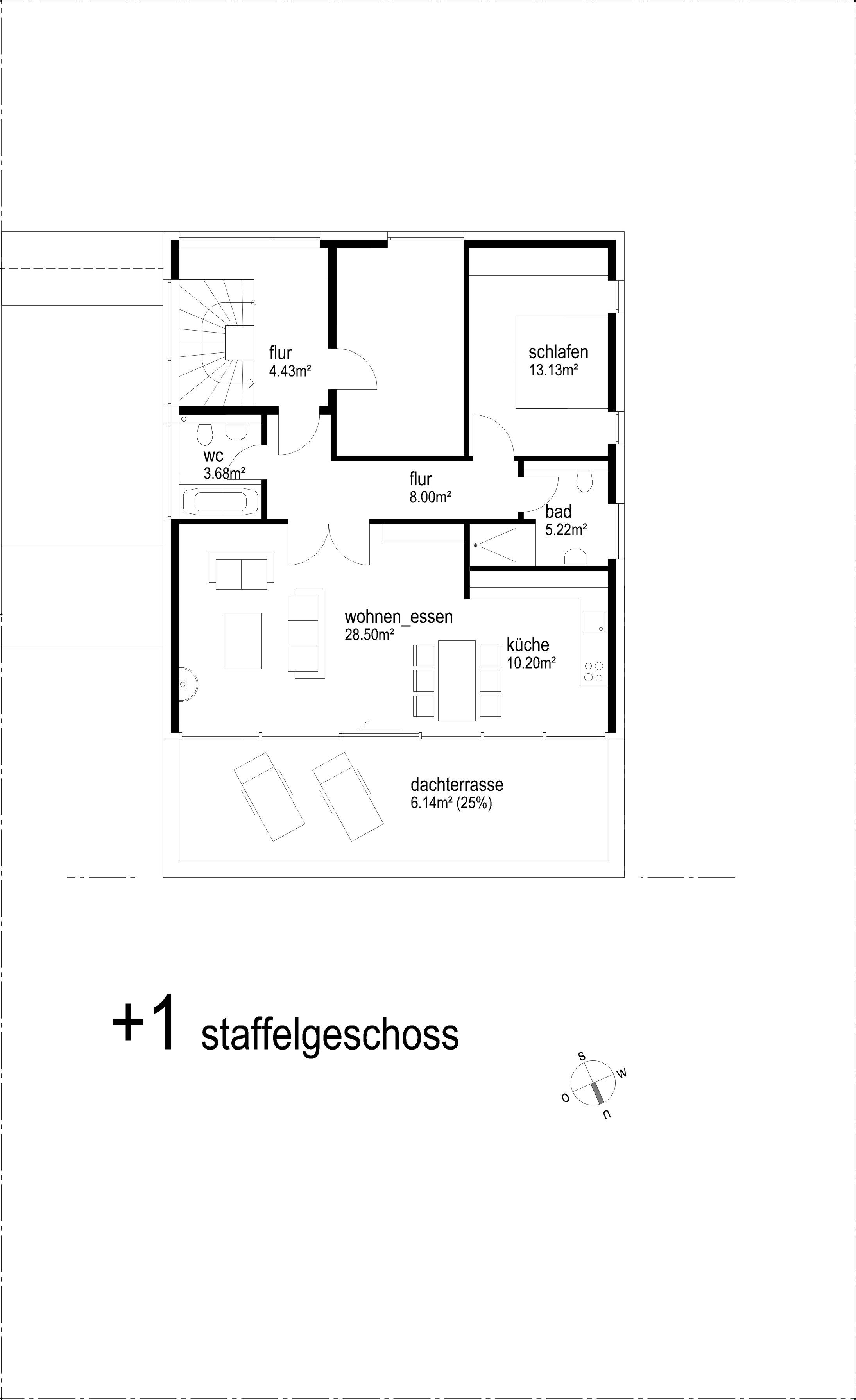 die im staffelgeschoss befindliche einliegerwohnung wird über ein separates treppenhaus erschlossen.
