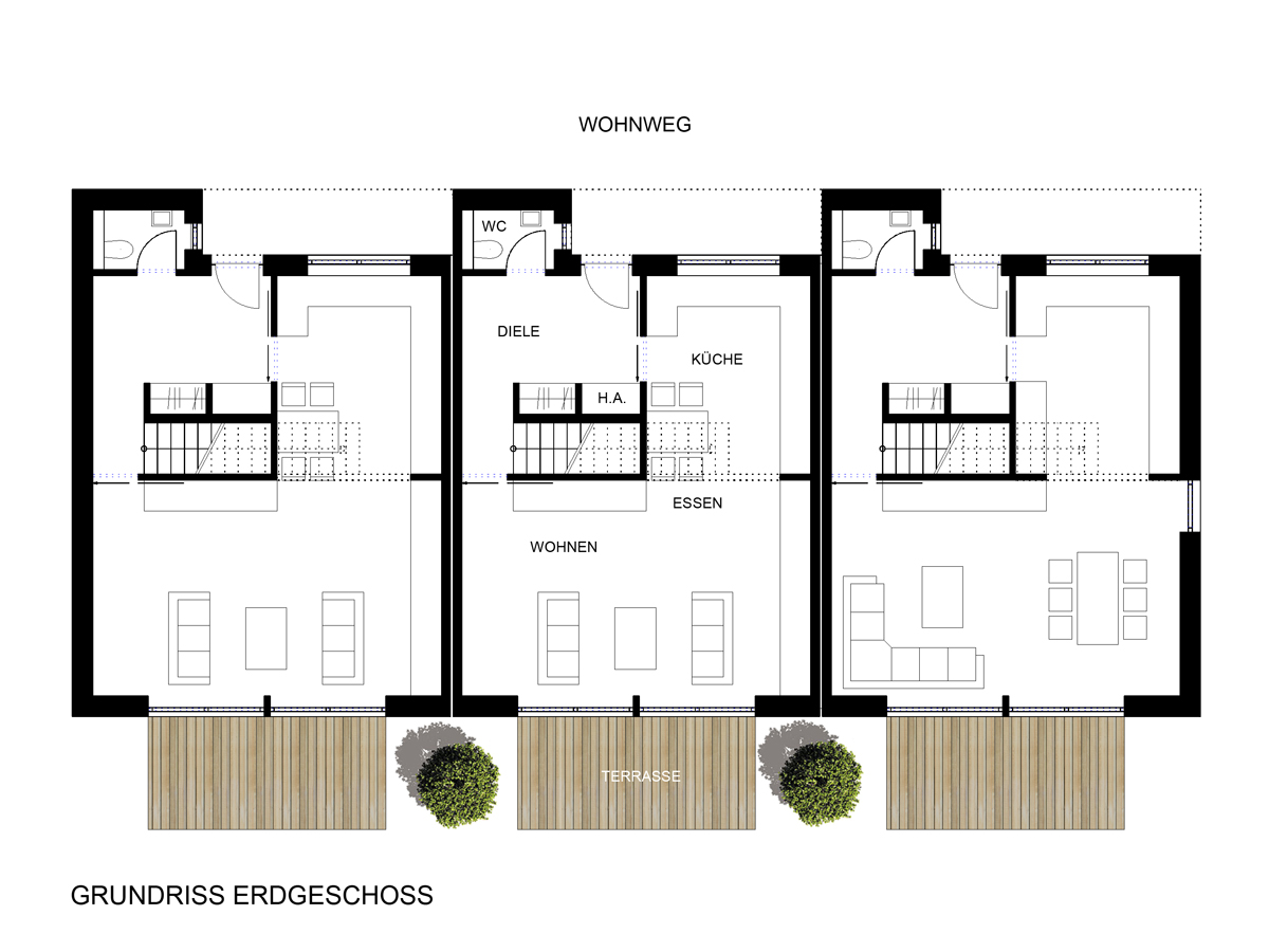 diese reihenhäuser entstehen im gleichen baugebiet in castrop-rauxel, in welchem wir die einfamilienhäuser planen.