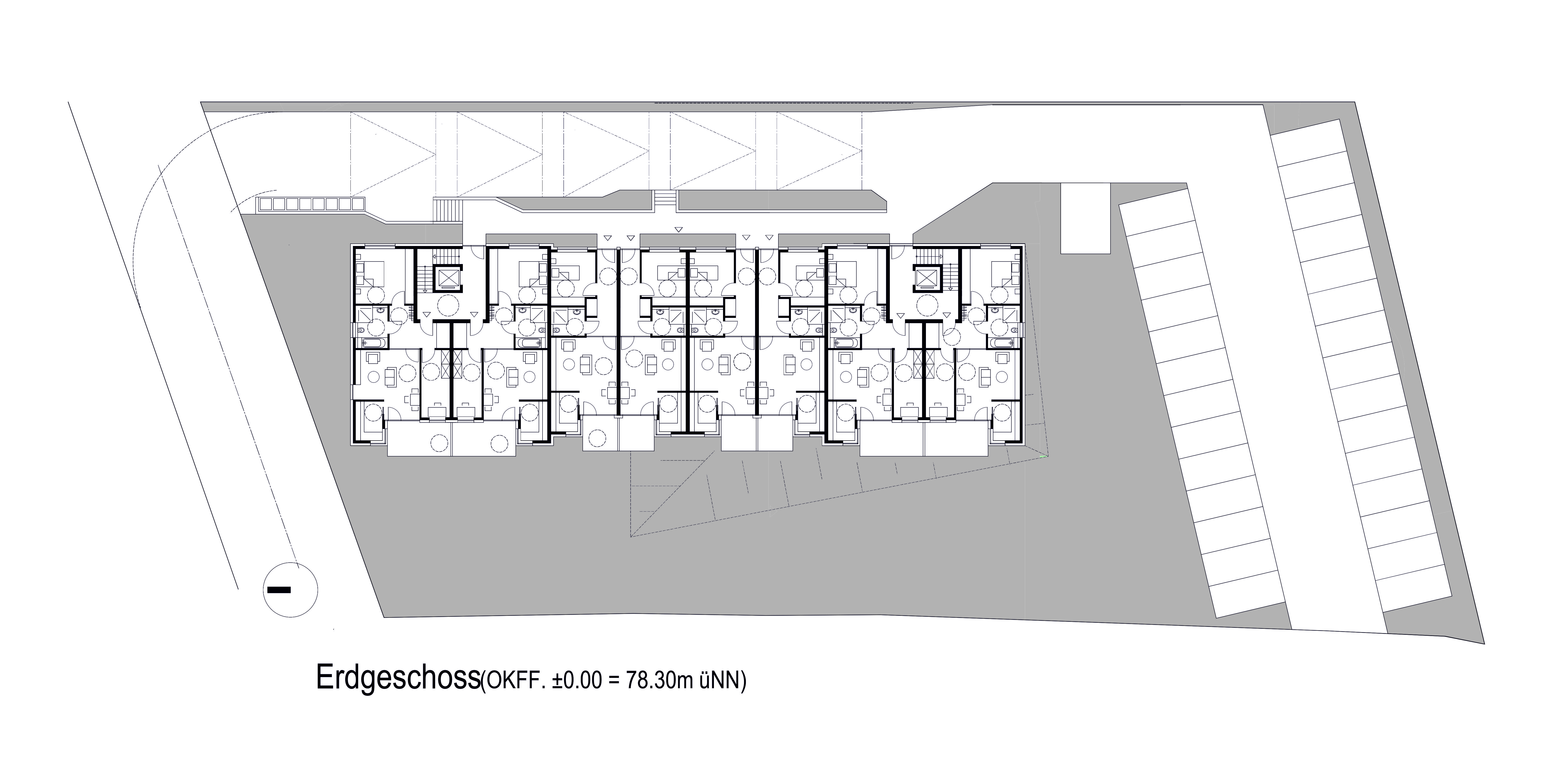 Es werden insgesamt 29 WE geschaffen mit ca. 1.806m² Wohnfläche, davon sechsundzwanzig 2-Raum-WE und drei 3-Raum-WE.